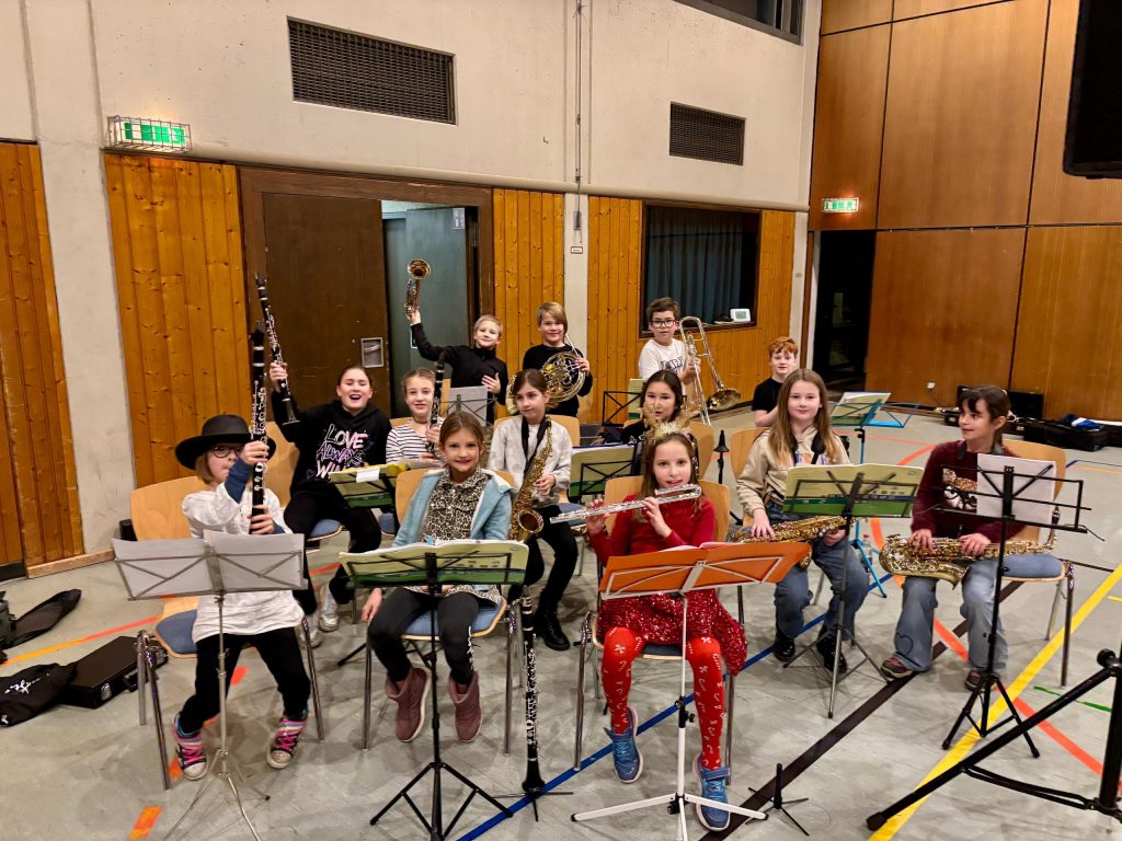 Die Bläserklasse feierte ihren Premieren-Auftritt bei dem Weihnachtskonzert Jugendmusikschule in der ev. Konradskirche und begeisterte mit zwei flott vorgetragenen Weihnachtsstücken. Im Anschluß an dieses überzeugte sie erneut zur Eröffnung unserer Weihnachtsfeier – zwei Momente, der sowohl Eltern als auch die Musiker stolz machte.